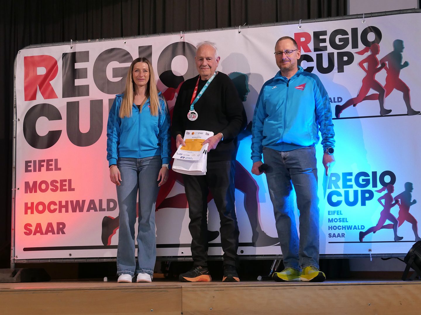 (Autor: Peter Schiffels) Wir hatten am Sonntag, 8.3.2026 die Ehre, die 1. Siegerehrung des 4-RegioCups bei uns in Langsur ausrichten zu dürfen. Die LG Langsur als Ausrichter des DEULUX-Laufs, der wie auch schon 30 Jahre lang im Bitburger Läufercup traditionell das Finale des Cups ist, empfing die Läuferinnen und Läufer, einige Sponsoren, die Presse sowie weitere Freunde und Unterstützer des 4-RegioCups in der Kulturhalle in Langsur.