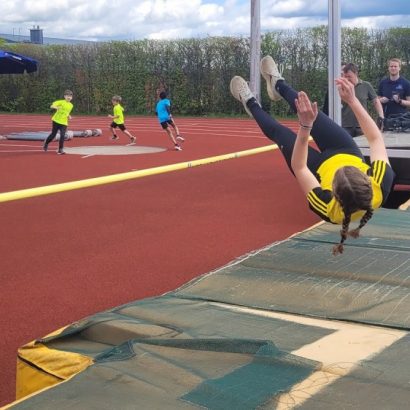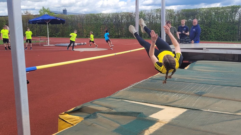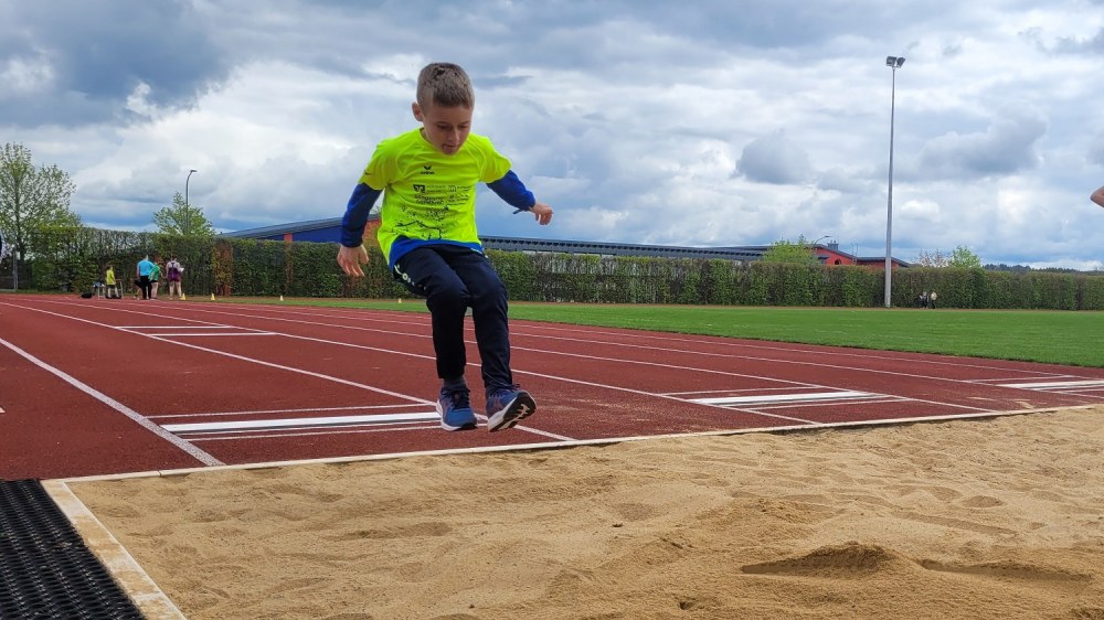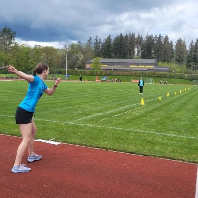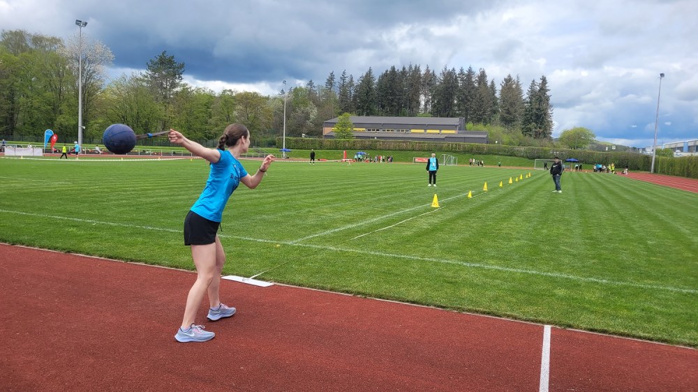 Am Samstag, 6.5.2023 machten sich 12 Sportlerinnen und Sportler mit 3 Trainern und einigen Fans auf zum Aktionstag Deutsches Sportabzeichen in Daun. Hier konnten die Kids auf der tollen Sportanlage neben den bekannten Disziplinen wie Sprint, 800m Lauf, Weitsprung und Weitwurf auch Sportarten ausprobieren, die wir bislang nicht ins Training integriert haben. Diese Disziplinen können z.B. absolviert werden, um andere schwächere Disziplinen individuell auszugleichen. An den Stationen waren jeweils erfahrene Helfer, die Zeiten, Höhen oder Weiten notierten und teilweise auch nützliche Anweisungen gaben. Die Kids könnten Hochsprung, Schleuderball, Kugelstoßen, Standweitsprung und Seilspringen ausprobieren. Zum Abschluss gab es kühle Getränke und Kuchen und mancher hatte noch genug Power für die Hüpfburg. Ein toller Tag. Anbei ein paar Eindrücke.