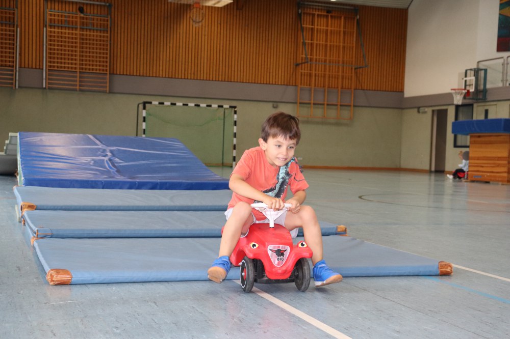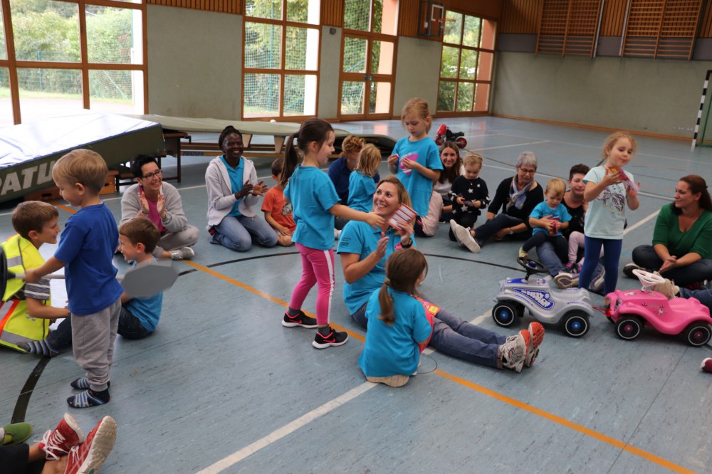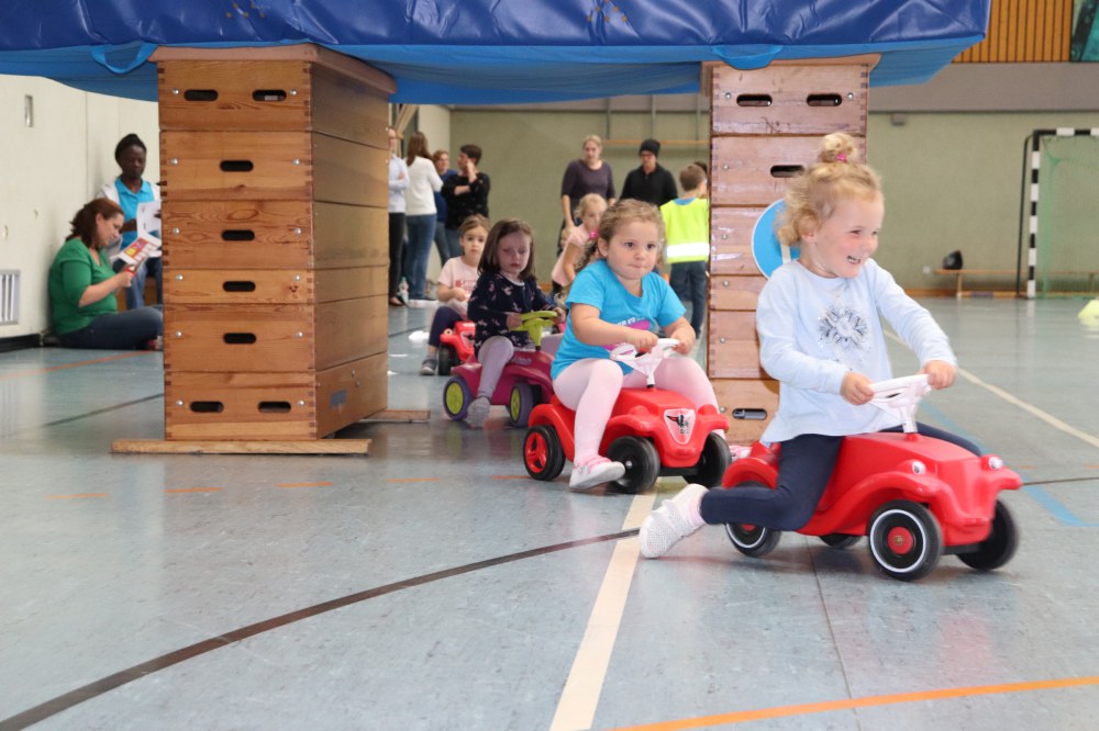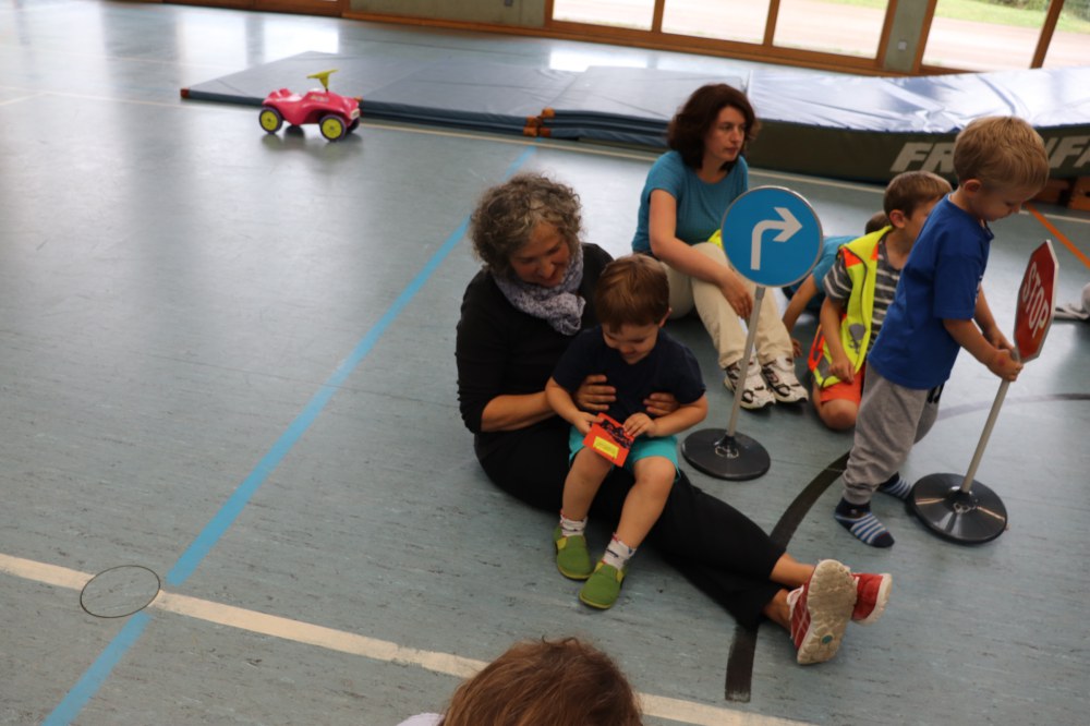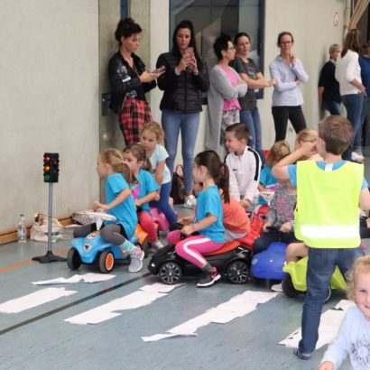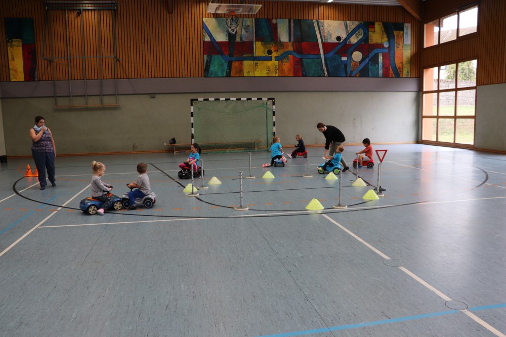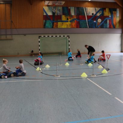 Mit einer kleinen Spielrunde wurde gestartet in der die Kinder einzelne Verkehrsschilder finden mussten. Dies war nicht immer leicht. Danach hat es die kleinen aber nicht mehr gehalten und Sie durften in mehreren Übungsrunden den Parcours erkunden und üben. Bei der Ampel kam es dann immer wieder zum Stau und bei GRÜN ging es dann wieder los. Die Verkehrsregeln mussten eingehalten werden, der Zebrastreifen und der Kreisverkehr musste beachtet werden. Zum guten Schluss hat jedes Kind seine Prüfung mit Bravour gemeistert und seinen Führerschein in Empfang genommen.
