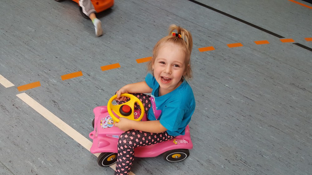 Wir machten mit Ihnen den Bobbycar Führerschein.