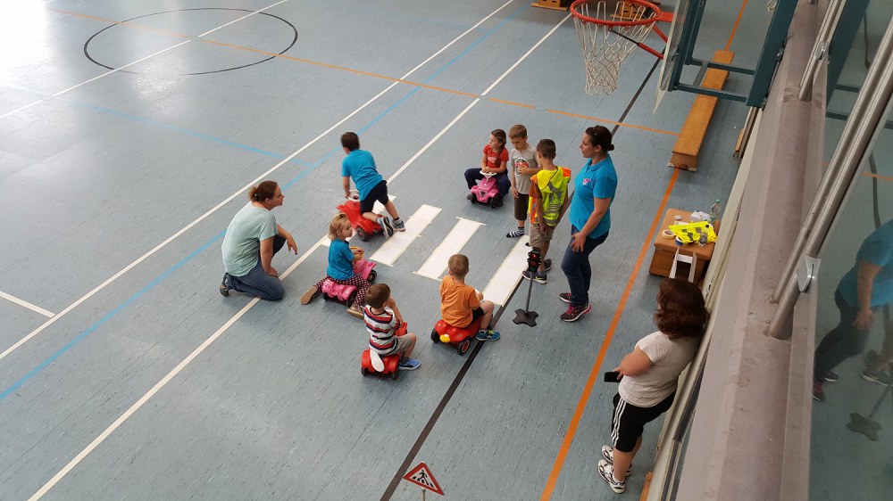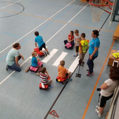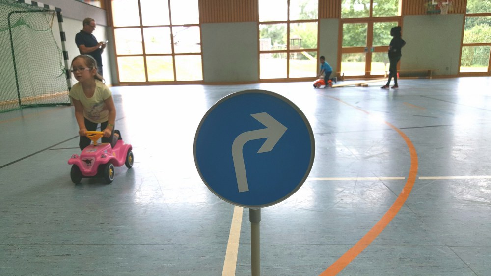 Die Bedeutung der Schilder wurden den Kids kurz erklärt und anschließend konnten sie sich im Parcours ausprobieren und austoben.