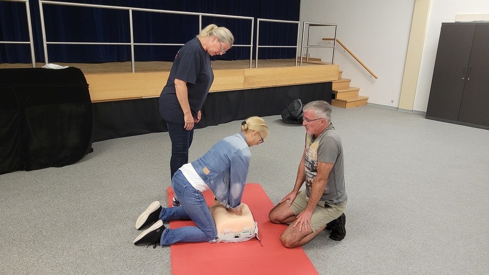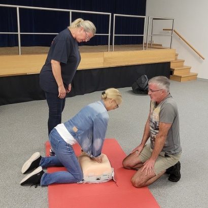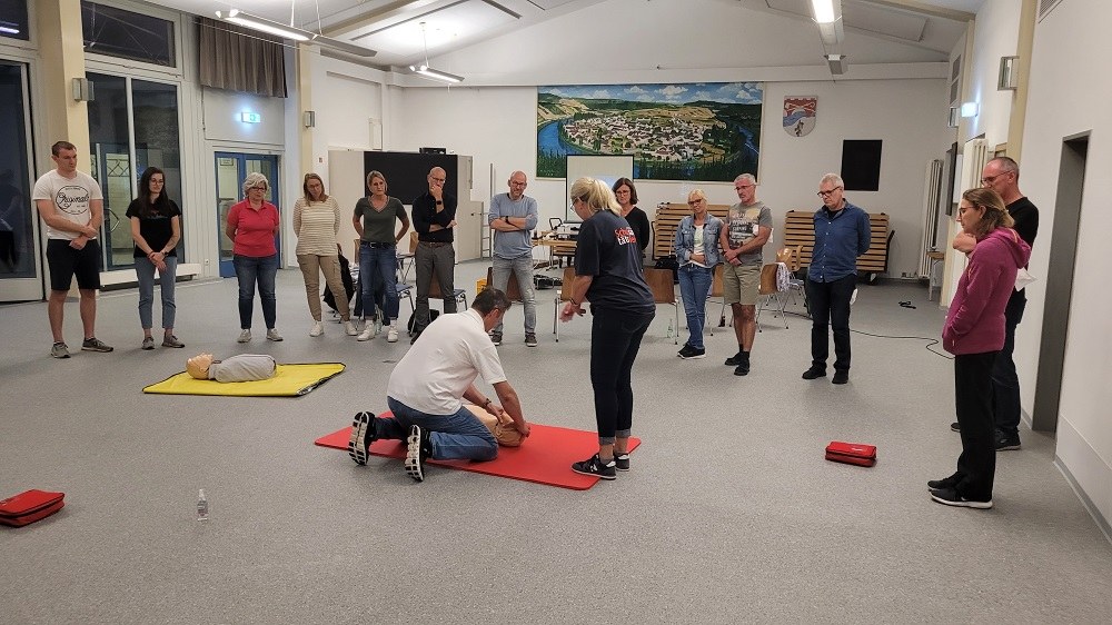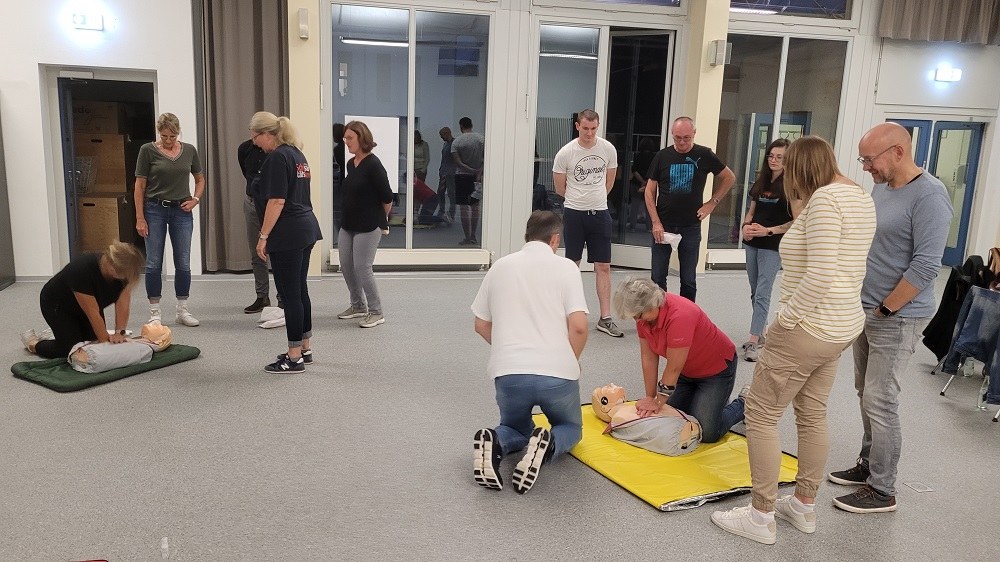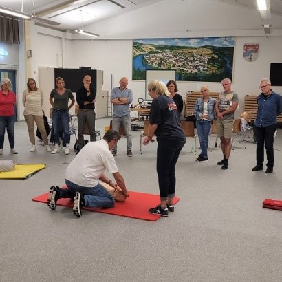 Am 14.09.2022 fand das von Herbert organisierte Ersthelfer und Reanimationstraining in der Kulturhalle in Langsur statt. 15 LG’ler nahmen teil. Alle waren sich einig: „das waren 3 wertvoll investierte Stunden“. Die beiden Trainer Silke Heinz-Döring und Christoph Pitsch frischten unsere teils veralteten und nur noch in dunkler Erinnerung vorhandenen Kenntnisse wieder auf und halfen uns hauptsachlich mit Praxistraining und Infos aus erster Hand wieder fitter zu werden. Die ersten Minuten in der Rettungskette sind enorm wichtig! Jeder sollte helfen können und wissen, was wichtig ist zu tun!