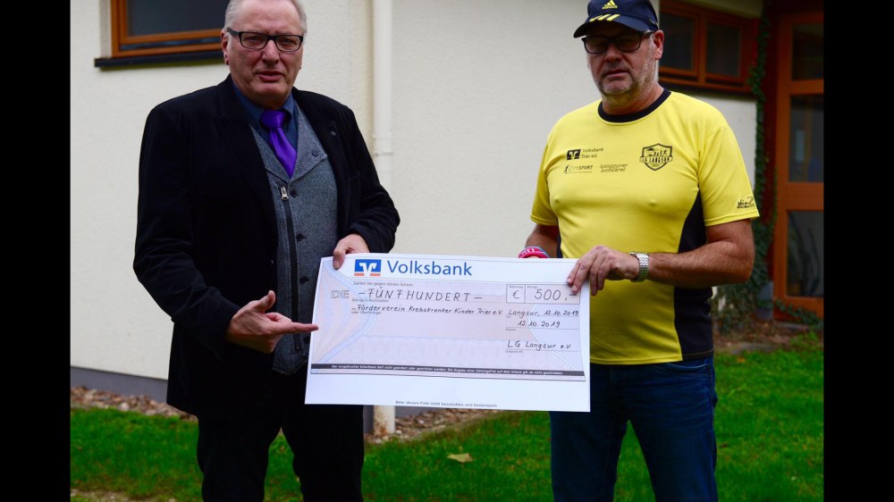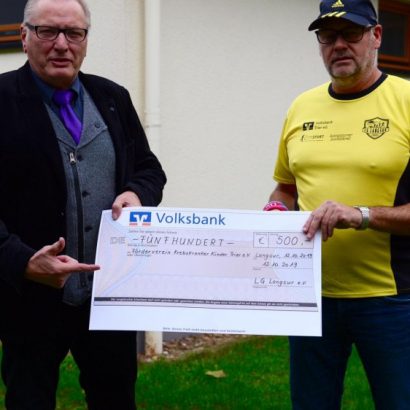Der DEULUX-Vorbereitungslauf wurde auch zum Anlass genommen, einen Spendenscheck in Höhe von EUR 500,- an den Förderverein krebskranker Kinder e.V. zu überreichen.