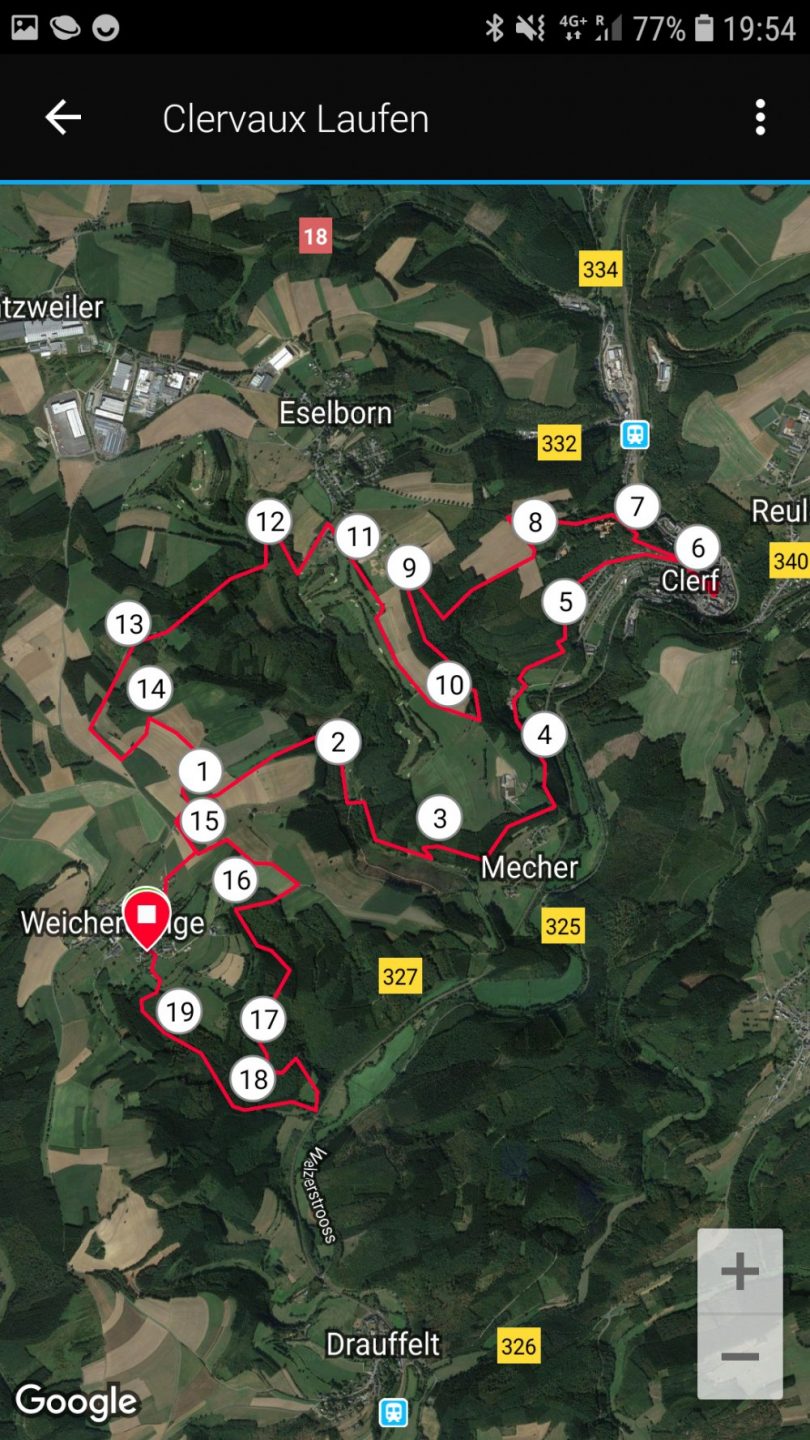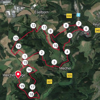 Passiert werden sollte eine Reihe von Türmen von ganz unterschiedlichen Größen, sei es der Zwiebelturm in Weicherdingen, die imposante Kirche in Clerf oder das Schloss sowie die idyllische Abtei nahe Clerf. Danach folgt der Golf von Clerf und dann geht es zurück nach Weicherdingen, um das Ziel zu erreichen.