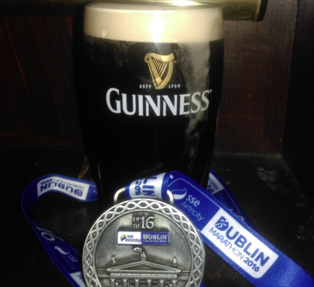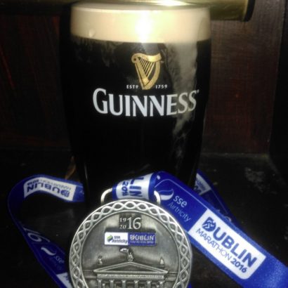 Vorbei an all den imposanten Sehenswürdigkeiten durchgehend Partystimmung, was bei der Quälerei eine absolut notwendige Unterstützung war. Aber irgendwann ging auch diese Quälerei dem Ende zu, die Bierschilder wurden häufiger und glaubwürdiger, und man konnte das Guinness förmlich schon schmecken, das in irgendeinem Pub für uns bereit stehen musste und uns für all diese Qualen entschädigen sollte. Mit diesem sehnsuchtsvollen Bild vor Augen überquerten wir „irgendwann“ die Ziellinie, alle zu unterschiedlichen – mehr oder weniger guten – Zeiten, aber immerhin aufrechten Schrittes. „Weldohn!“ Jetzt noch Medaille umhängen, „Weldohn“, Finisher-Shirt überziehen, „Weldohn“, und ab ins nächste Pub. Denn eines war von vorn herein klar: Laufen ist schön, aber nicht das Wichtigste in Irland. Nicht mehr 42 Kilometer, sondern ab jetzt 42 Guinness sollten in irgendeinem Paradies auf uns warten. Zu allem Überfluss war ausgerechnet an diesem Wochenende auch noch Helloween. Wenn an gewöhnlichen Wochenenden die Pubs schon voll waren, dann wurde dieser Zustand durch Helloween noch potenziert. Kurz: Dublin im Ausnahmezustand. Selbst der erfahrenste Kneipier unter uns Vieren musste resignierend anerkennen: Mehr Stimmung geht nicht.