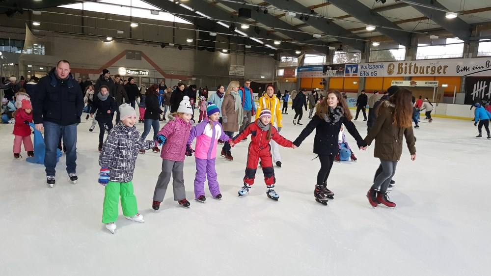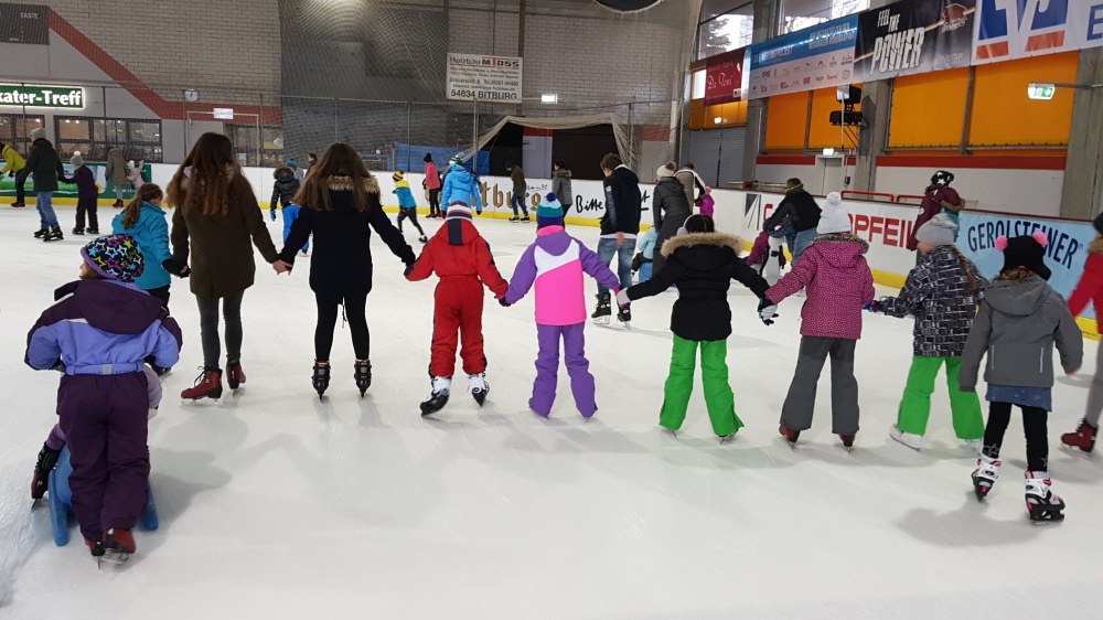 Am Sonntag, 14.1.2018 startete die LG Langsur Jugendgruppe gleich mit einem Highlight ins neue Jahr 2018. 15 Kids und 11 Eltern machten sich auf den Weg zur Eishalle nach Bitburg. Während unserer gemeinsamen „Eiszeit“ hatten alle viel Spaß. Manche kamen schnell mit dem glatten Untergrund zurecht, andere mussten sich erst etwas reinkämpfen. Ein guter Jahresauftakt für unsere Jugendgruppe.