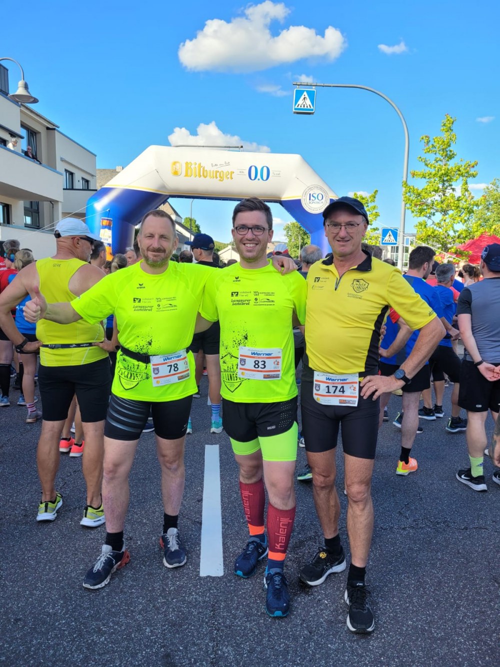 Der Römerstrom-Bambinilauf über 500m, der Polarixpartner-Jugendlauf über 1,8km, der Elatec-Firmen- und Jedermannlauf über 5,3km und schließlich der Autohaus Werner-Hauptlauf über 10km. Stolze 739 Teilnehmer*innen waren insgesamt gemeldet. Unsere drei LGler allesamt für die „große“ Runde von 10km.