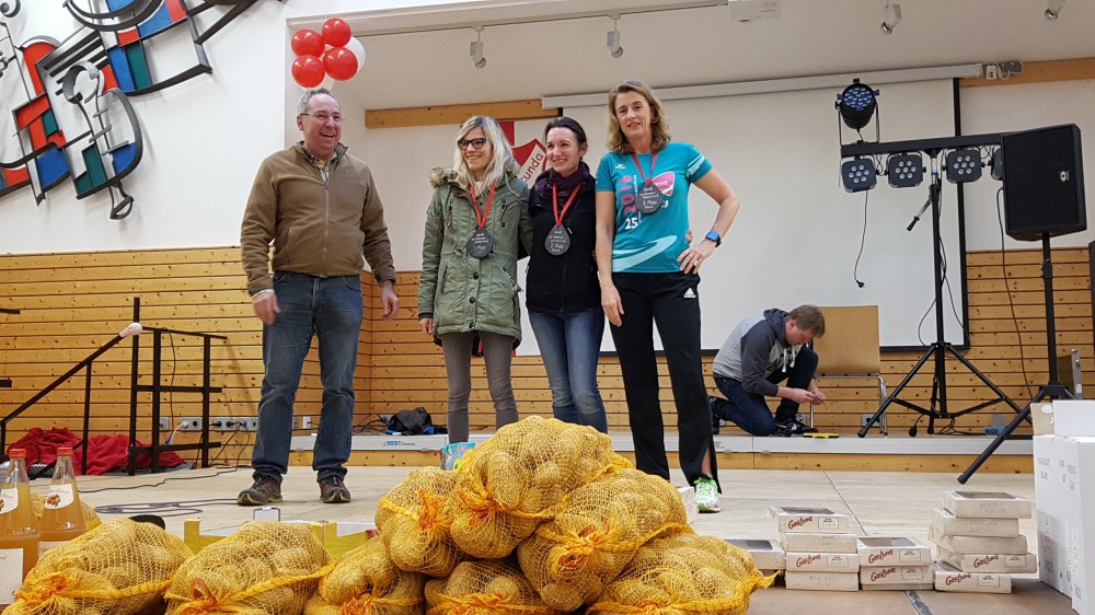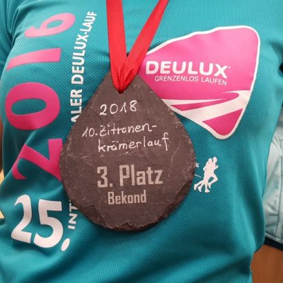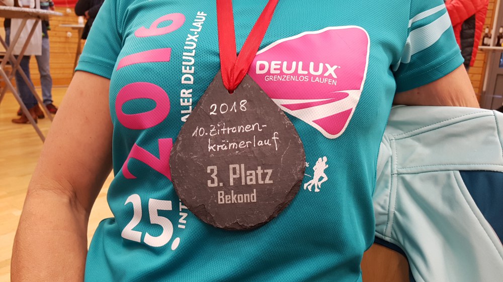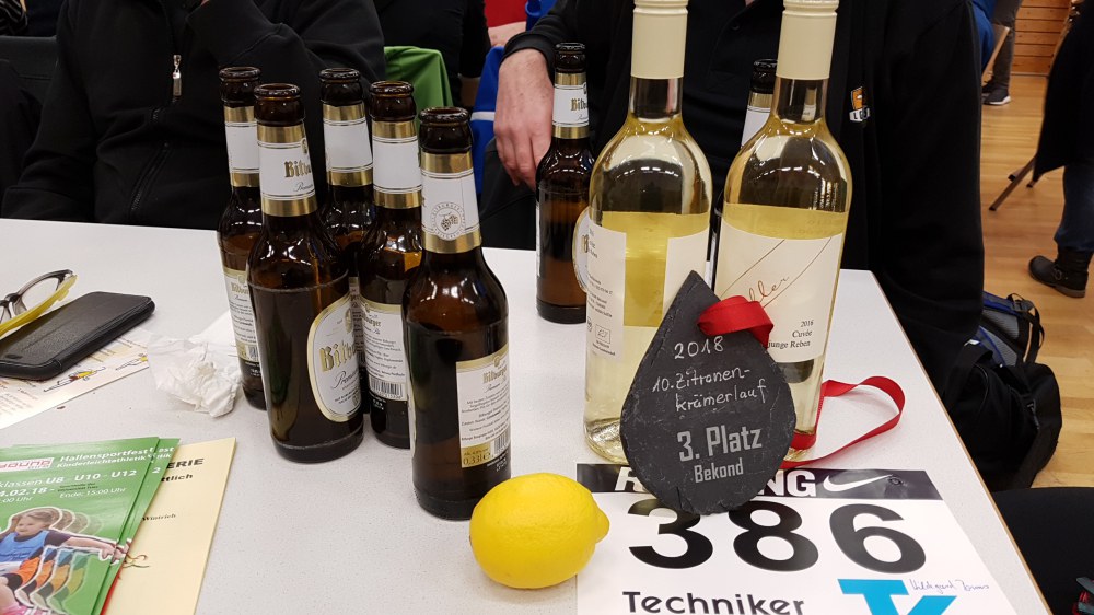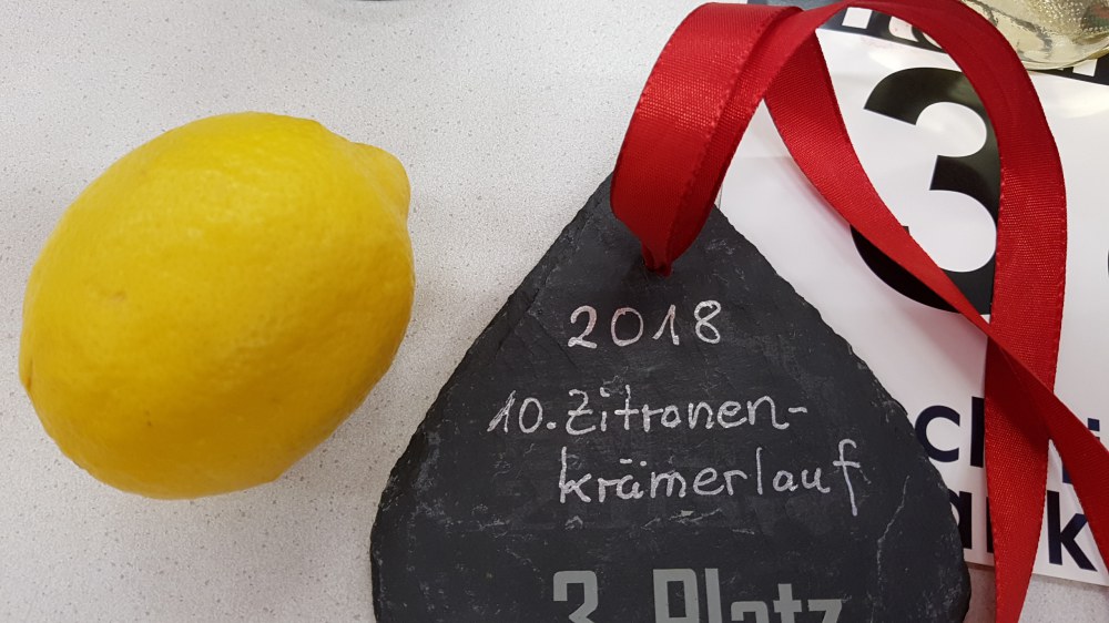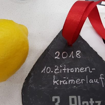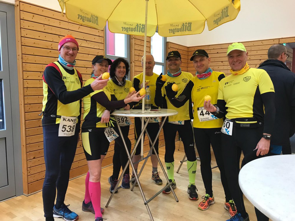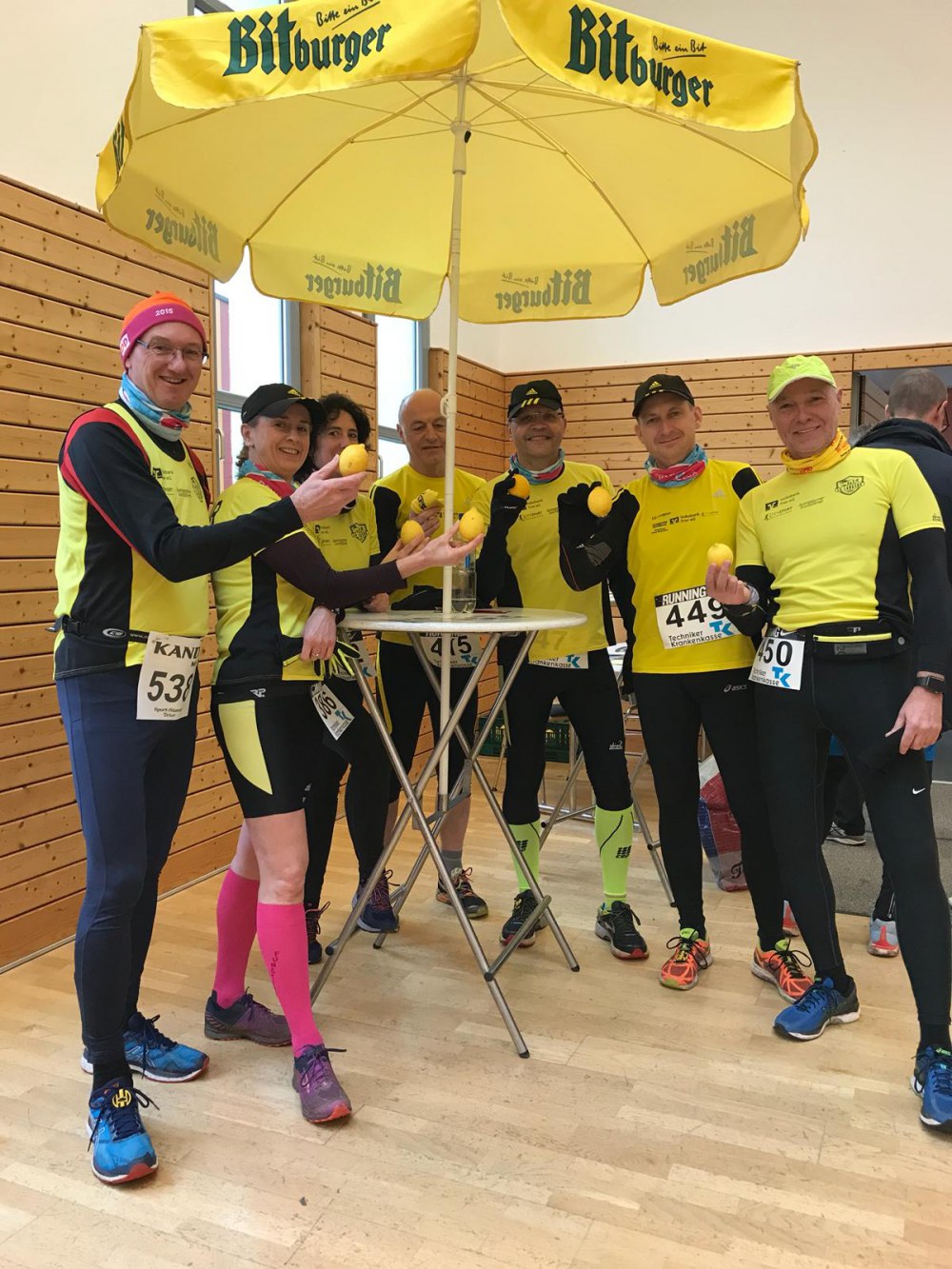 Am 27.1.2018 waren Hilde, Nadja, Thomas, Herbert, Remy, Ulli und Peter von der LG Langsur in Bekond beim Zitonenkrämerlauf unterwegs. Der Lauf ist nach einem ermordeten Zitronenkrämer benannt. Zu seinem Gedenken wurde auf dem Berg zwischen Bekond und Ensch ein Kreuz errichtet. Der ca. 2 km lange Anstieg zum Kreuz des Zitronenkrämers hatte es mal wieder in sich. Aber die LG’ler meisterten auch das. Der 12 km lange Lauf machte auch in diesem Jahr wieder viel Spaß. Die Sonne ließ sich zwar nicht blicken, doch es blieb trocken. Die Strecke war etwas matschig, aber das konnte die zitronengelben LG Läuferinnen und Läufer nicht abschrecken. Hilde verdiente sich als drittschnellste Frau eine schöne Medaille. Hilde und Ull räumten dann auch noch bei der Tombola ab. Ein gelungener Ausflug.