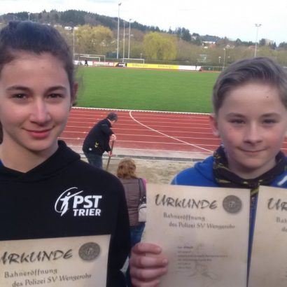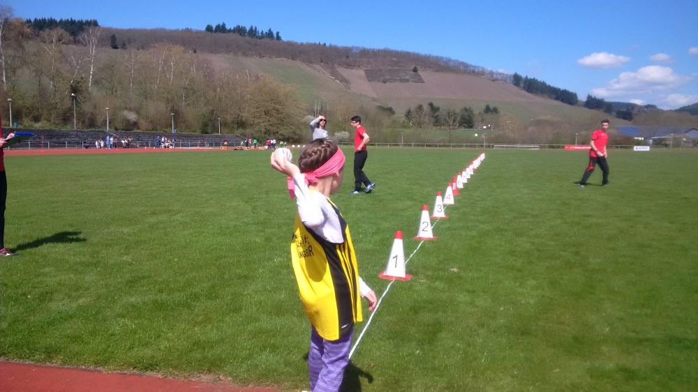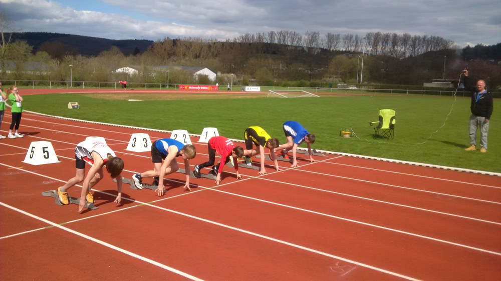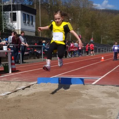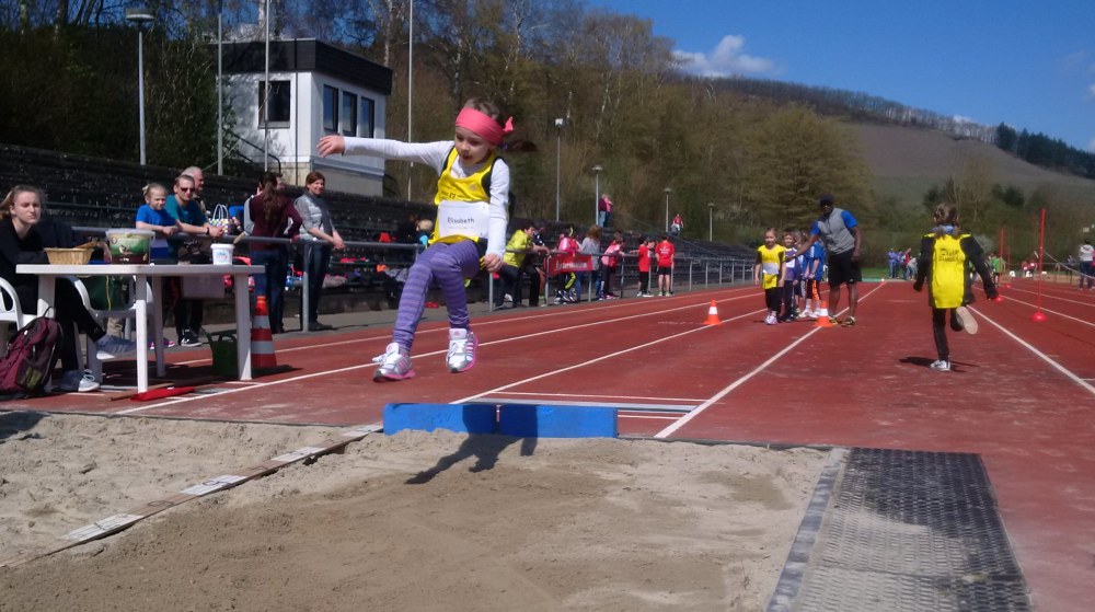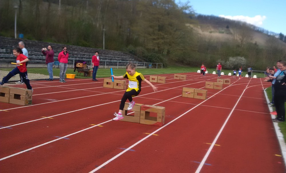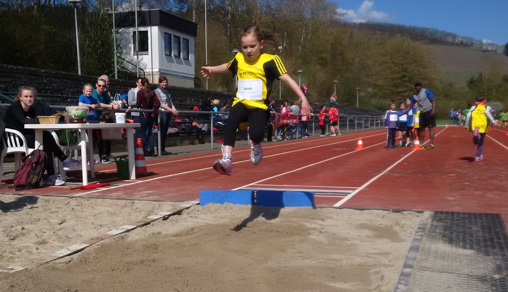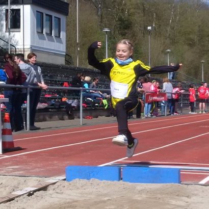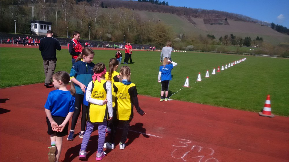 Am Samstag, 9.4.2016 war die LG Langsur Jugendgruppe in Wittlich bei einem Leichtathletikwettkampf am Start. Um 11:30 Uhr startete das gemeinsame Aufwärmen der Kinderleichtathletikgruppen der Altersklasse U10 bei tollem Sonnenschein. Unsere drei U10 Mädels bildeten eine Gruppe zusammen mit dem Wittlicher TV. Die Gruppe sammelte gemeinsam Punkte im Weitwurf, Weitsprung und bei einer Hürdenstaffel über Bananenkisten. Alle hatten viel Spaß und die Mädels haben sich super geschlagen.