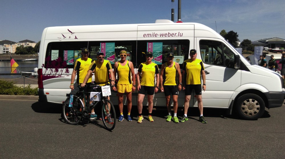 Freitag, 10.7.2015 morgens um 8:45 Uhr setzte sich unser Begleitfahrzeug (ein Bus von Emile Weber) gesteuert von Armand in Bewegung. Unsere 6 Teilnehmer für die komplette Strecke wurden eingesammelt. Mit Ihnen diverse Köstlichkeiten für die Stärkung erschöpfter LG Läufer. Ein bisschen ist der Hospizlauf auch ein Genusslauf. Neben den offiziellen Verpflegungsständen an der Strecke, jeweils am Ende bzw. am Anfang einer Etappe sollen sich die Läufer selbst verpflegen. Uns ging es kulinarisch nicht gerade schlecht. Hatten wir doch z.B. Kaffee, Cola, Wasser (natürlich auch gekühlt), diverse Kuchen, Muffins, Teilchen und Nudelsalat und noch mehr dabei. Dazu kommen die jährlichen Highlights an den Verpflegungsständen: Grillen am Parkplatz hinter Poltersdorf, Verpflegung in Bremm mit musikalischer Begleitung der Bremmer Stadtmusikanten, Buffet am Kaffee Bauer in Zell, Suppe in Bernkastel und Streuselkuchen in Piesport. Beim Hospizlauf auf den fast 200 km von Koblenz bis Trier in der LG Langsur Staffel dabei zu sein, ist ein ganz besonderes Erlebnis. Alle arbeiten am gemeinsamen Ziel, alle Etappen für die LG zu erlaufen. Man kommt an seine Grenzen durch wenig oder gar keinen Schlaf, durch viele viele Kilometer, die nur der Event Hospizlauf möglich macht, und die man sich selbst sonst gar nicht zutrauen würde. Die Hitze und die Sonne machten wieder sehr zu schaffen. Remys Pferdesalbe und Reflexspray, Mikas Magnesium Tabletten sowie Peters Franzbrantwein und Vaseline waren für die Läufer wichtige Begleiter, um so manches Wehwehchen zu behandeln.