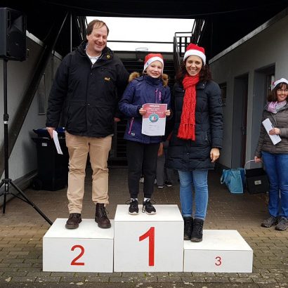 Auch im 5 km Lauf belegte die LG Langsur Jugendgruppe einen 1. Platz in der Altersklasse WU18. Hilde und Peter, die die „Senioren“ der LG Langsur vertraten liefen zwar keine Topzeiten, hatten aber viel Spaß und rundeten das tolle Lauferlebnis unter dem Motto des Laufs „Santa is running for Haiti“ ab.