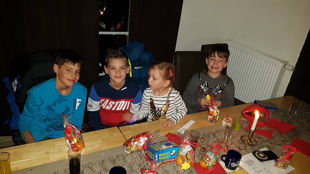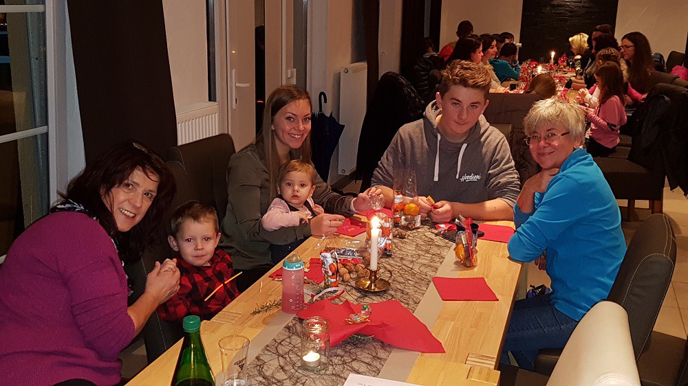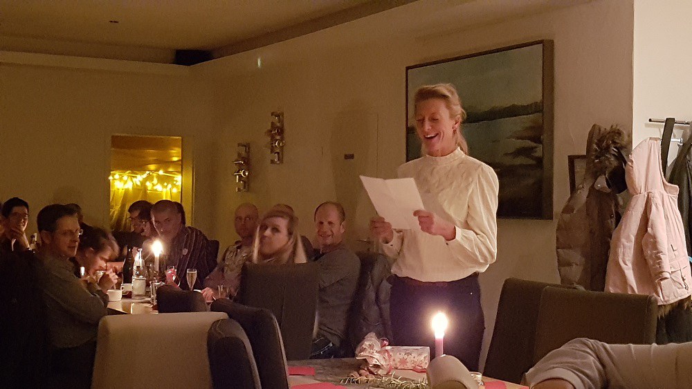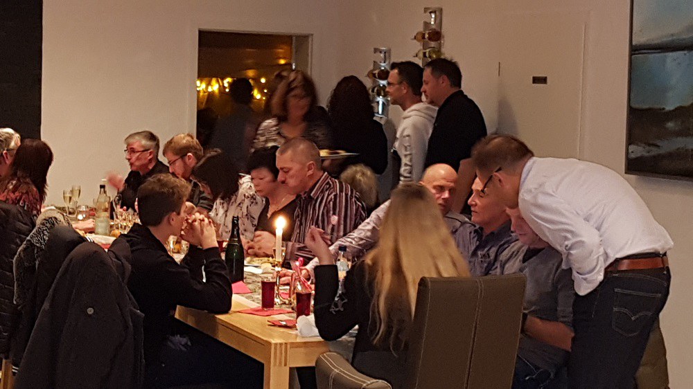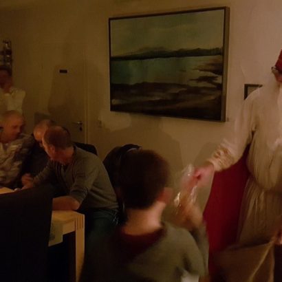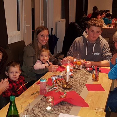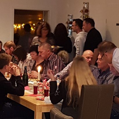 In diesem Jahr kam die LG Langsur beim Weingut Bamberg in Metzdorf zur Weihnachtsfeier zusammen. Marieke und Sabrina hatten die Feier toll organisiert. Nur Petrus durchkreuzte die Pläne. Wegen des heftigen Regens musste die geplante Fackel-und Laternenwanderung leider sprichwörtlich ins Wasser fallen. Trotzdem waren viele Erwachsene und junge LG-ler gekommen. Bei Glühwein und Sekt stimmte die Truppe sich ein, bis er endlich herein kam. Begleitet von „Lasst und froh und munter sein…“ wurde der heilige Nikolaus quasi hereingesungen. Er belohnte uns mit netten Worten und Geschenken, die bei Groß und Klein gut ankamen. Als der Nikolaus wieder nach draußen verabschiedet war, wurde das Buffet eröffnet und wir saßen noch lange gemütlich zusammen. Unserem LG-Häuptling Mika wurde noch mit einem Gedicht, vorgetragen von Marieke, gedankt. Ein schöner Abend.
