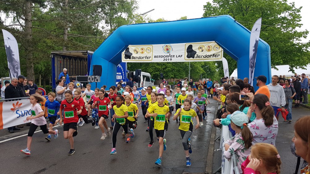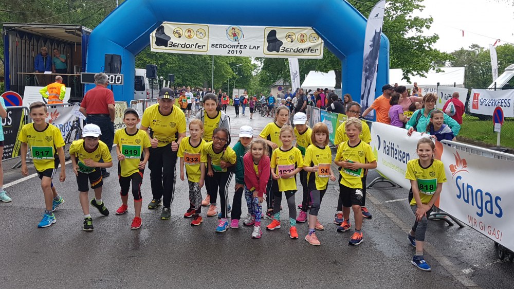 Beim Berdorfer Laf am Samstag, 18.5.2019 glänzte die Jugendgruppe der LG Langsur mit 17 Teilnehmerinnen und Teilnehmern bei den verschiedenen Läufen (400m, 800m, 1.200m, 5.000m). Beim 1.200 Meter Kids Run der 10 bis 12-Jährigen dominierte die Farbe Gelb klar. Mit Julie und Jule konnten die starken Mädels der Jugendgruppe sogar die Pokale und Preise für den 2. und 3. Platz abräumen. Ganz starke Leistung von allen!