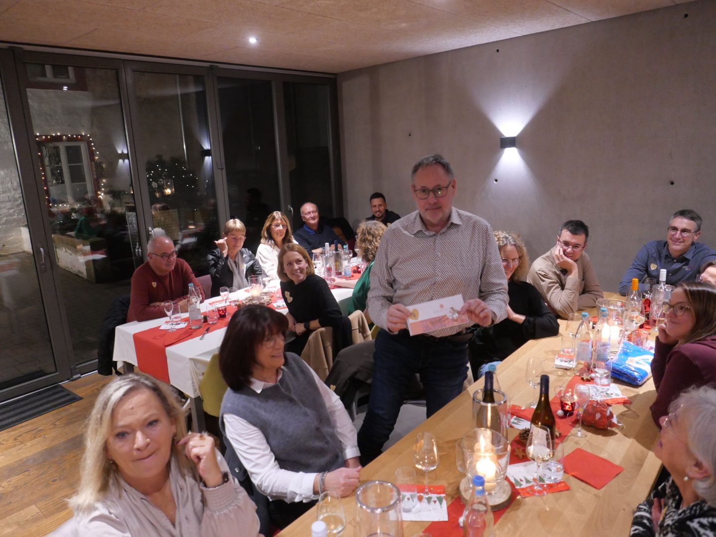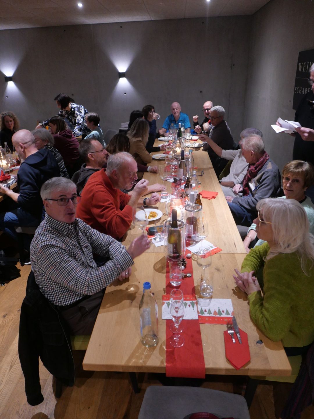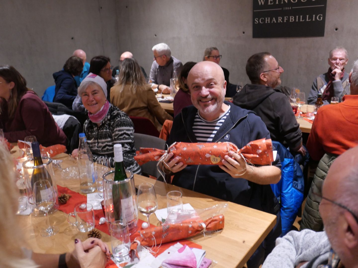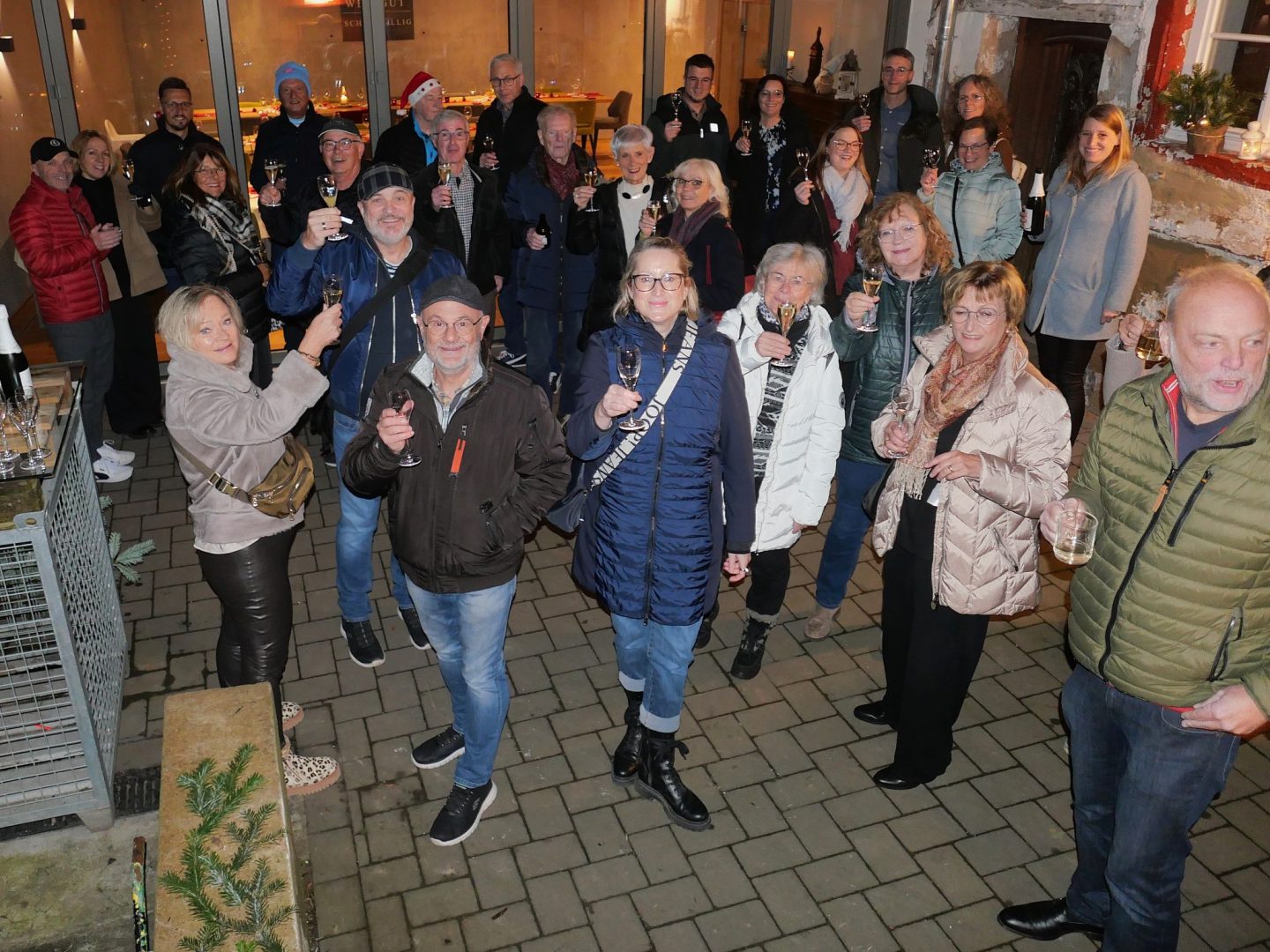 (Autor: Klaus Blohm) Weil es uns im letzten Jahr schon so gut gefallen hatte, kehrten wir für unsere Weihnachtsfeier erneut ins Weingut Scharfbillig nach Igel zurück. Rund 40 feierfreudige LG’ler trafen sich am 13.12.2025 im Hof des Weinguts und brachten sich bei Winzerglühwein und Sekt in Stimmung.