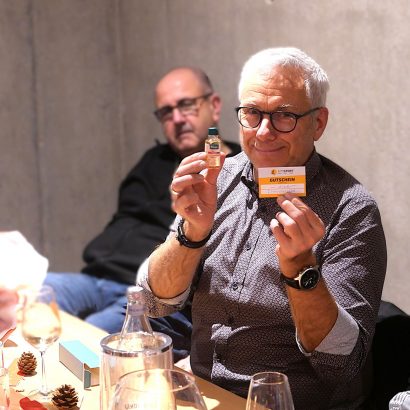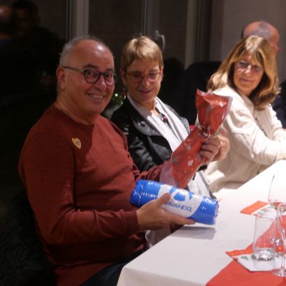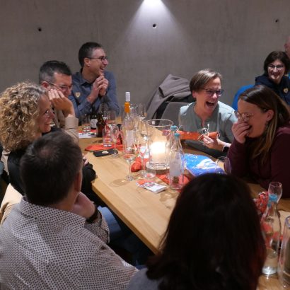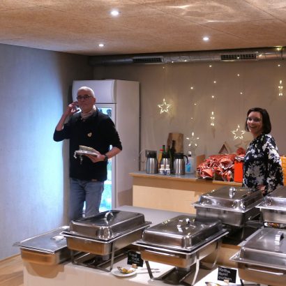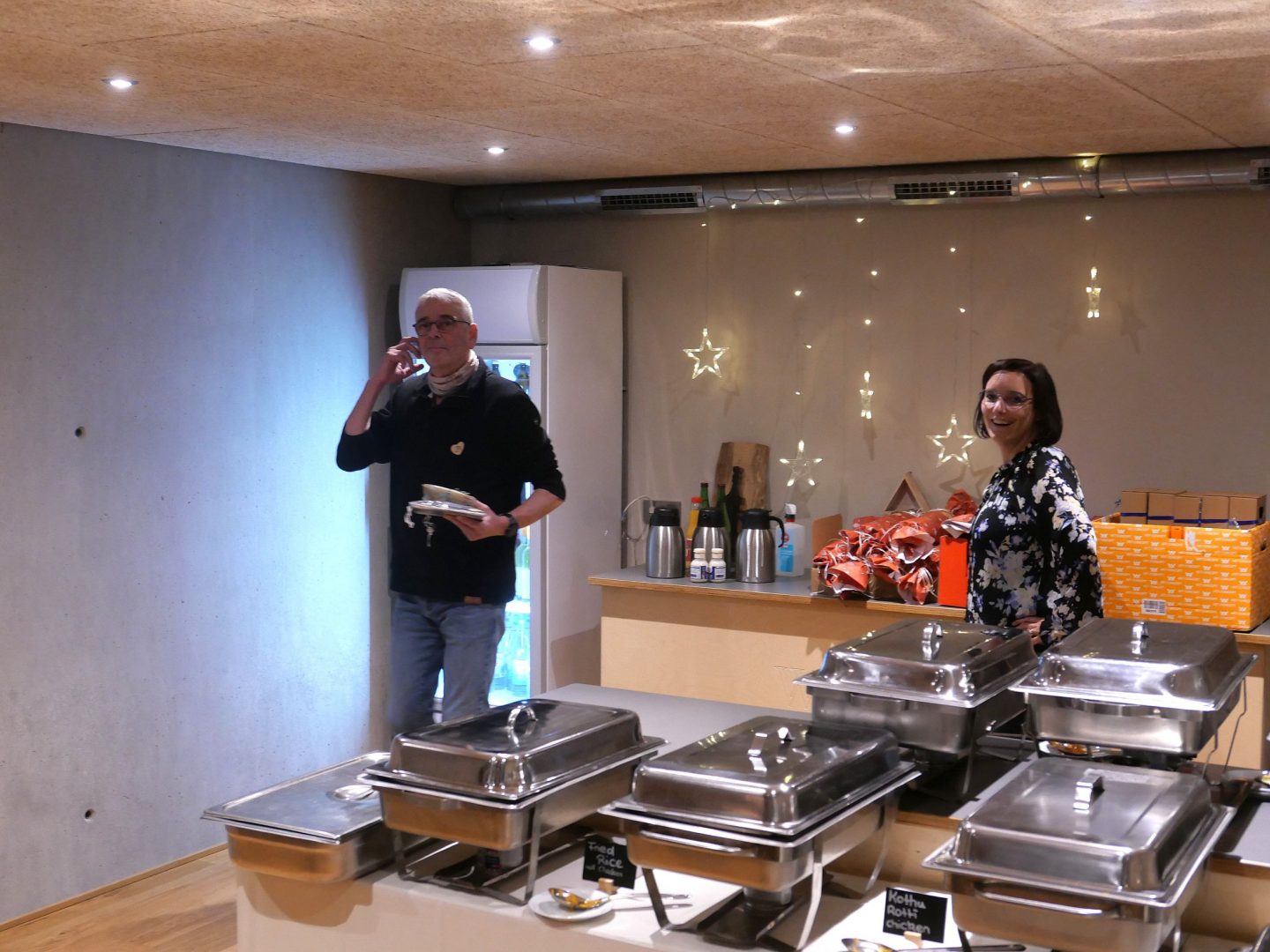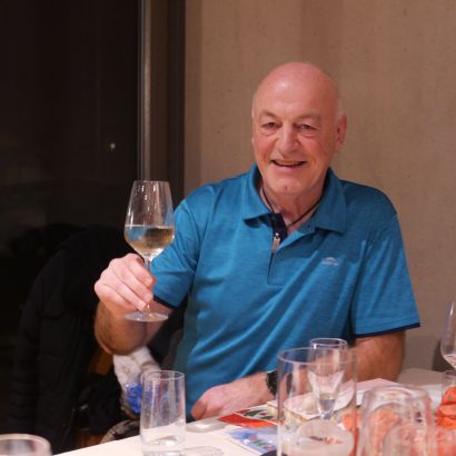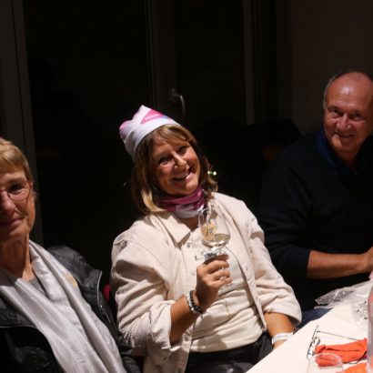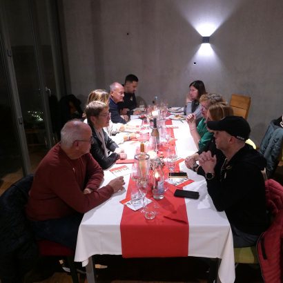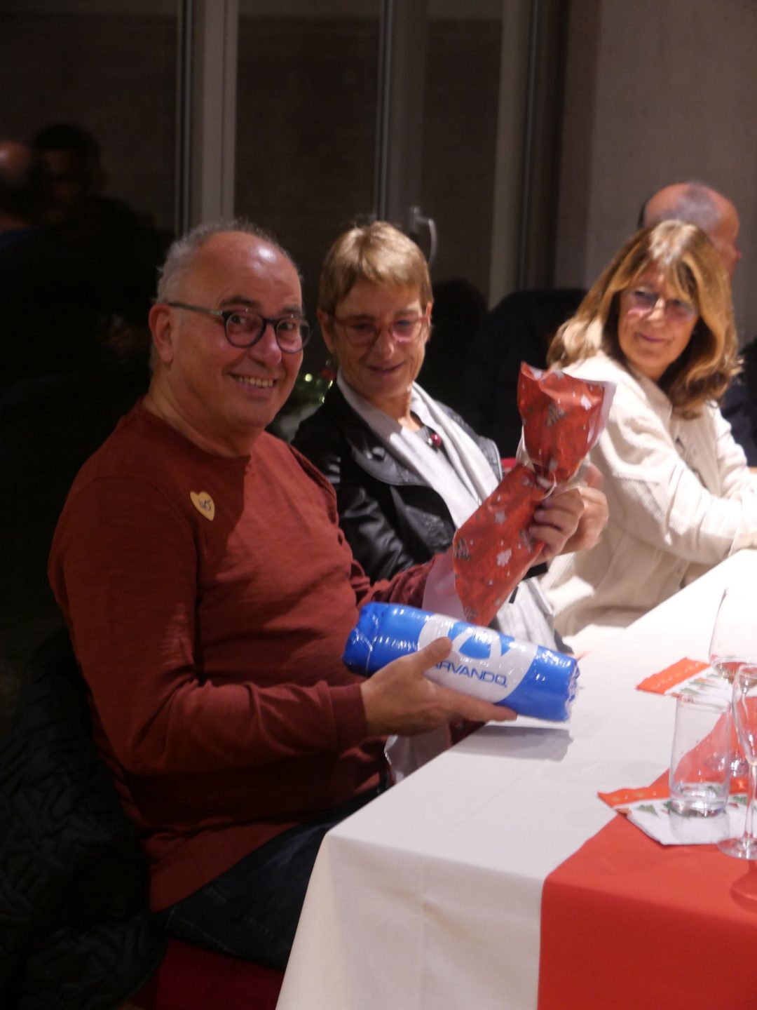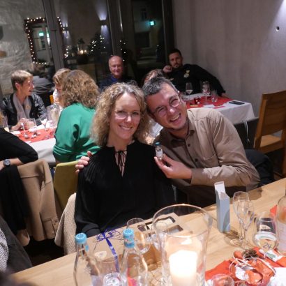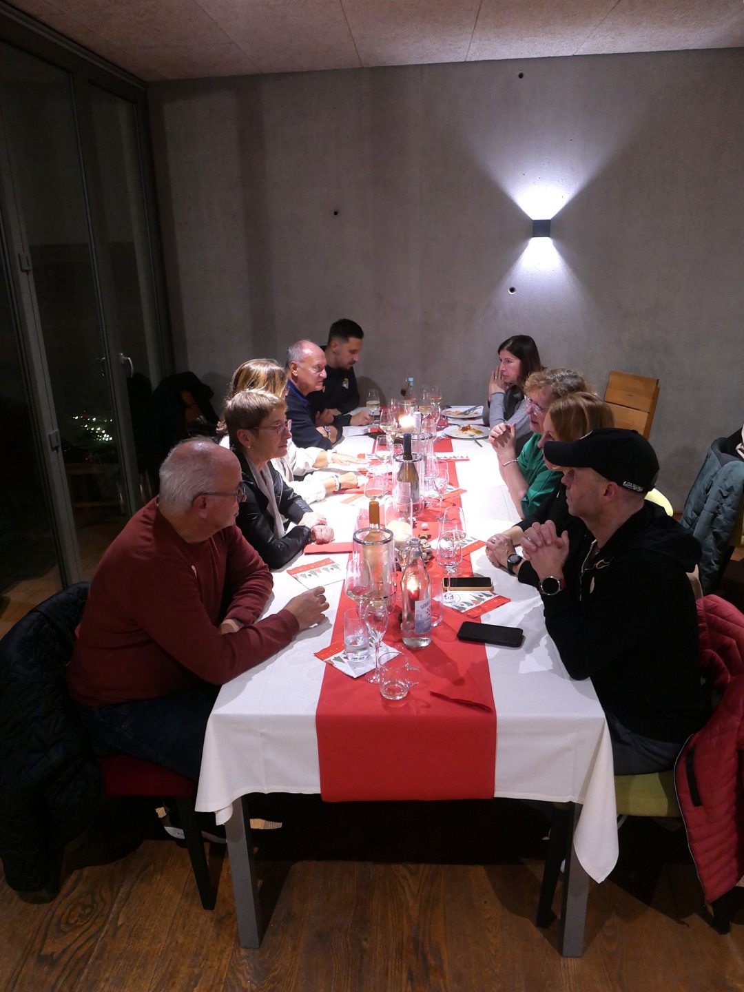 In der Weinstube ging es mit leckerem Essen vom lokalen Caterer und einer ausgesprochen überzeugenden Weinauswahl weiter. Höhepunkt des Abends war wie immer die Bescherung aus dem prall gefüllten Merchandising-Fundus – von Badetüchern über Badeöle bis hin zu Laufmützen und Buffs war alles dabei.