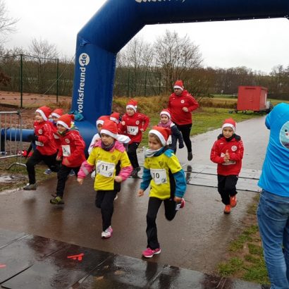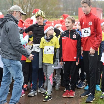 Nach dem Warmlaufen ging es für Elena und Katie (Kategorie U8) schon zum Start, während alle anderen gelben LG-Nikoläuse die beiden anfeuerten. Sie sind eine Runde von 1,3 Km gelaufen. Direkt danach starteten in der Kategorie U10, Tobias, Yannis, Karla und Maia (2 Runden/2,6 Km) und in der Kategorie U12/14, Jule N., Tea, Sarah und Emilia (3 Runden/3,9 Km). Alle kamen lächelnd über die Ziellinie und das zeigte sich dann auch bei der Siegerehrung hinterher. Bejubelt von Nikolaus und Knecht Ruprecht standen viele Kinder unserer Jugendgruppe auf dem Siegertreppchen. Untenstehend alle Ergebnisse und Zeiten.