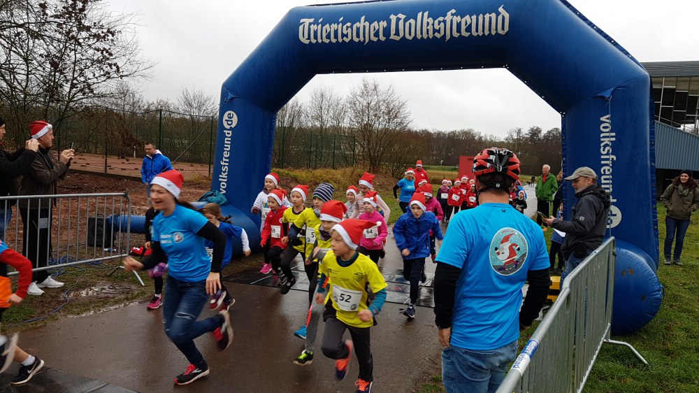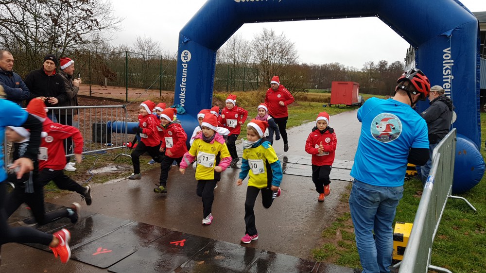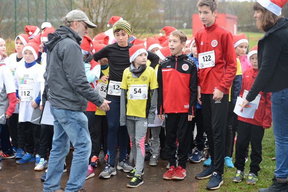 Für die Kinder und Eltern war bereits um 9 Uhr Abfahrt in Langsur vor der Turnhalle. In Salmrohr angekommen gab es ein kleines warmes Zelt. Nachdem Peter alle Startnummern abgeholt und verteilt hatte, gab es unter den jüngeren Teilnehmern direkt gute Laune. Jeder Teilnehmer bekam eine Nikolausmütze.